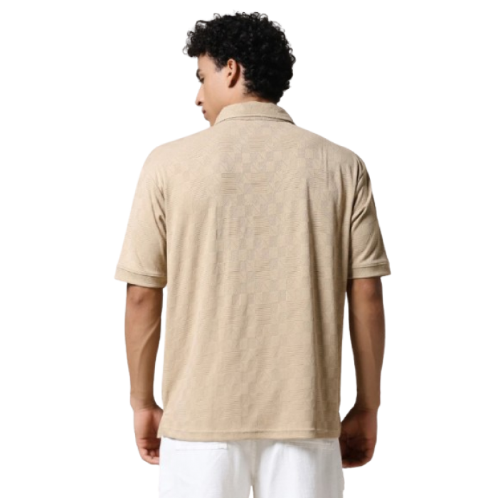 Refresh your wardrobe with this sleek beige polo t-shirt. Designed with a subtle geometric textured pattern, it blends modern sophistication with effortless comfort. The lightweight, breathable fabric keeps you cool, while the half-zip closure at the neckline adds a contemporary twist to a timeless classic. Perfect for both casual outings and semi-formal settings, this versatile piece pairs easily with jeans, chinos, or shorts.